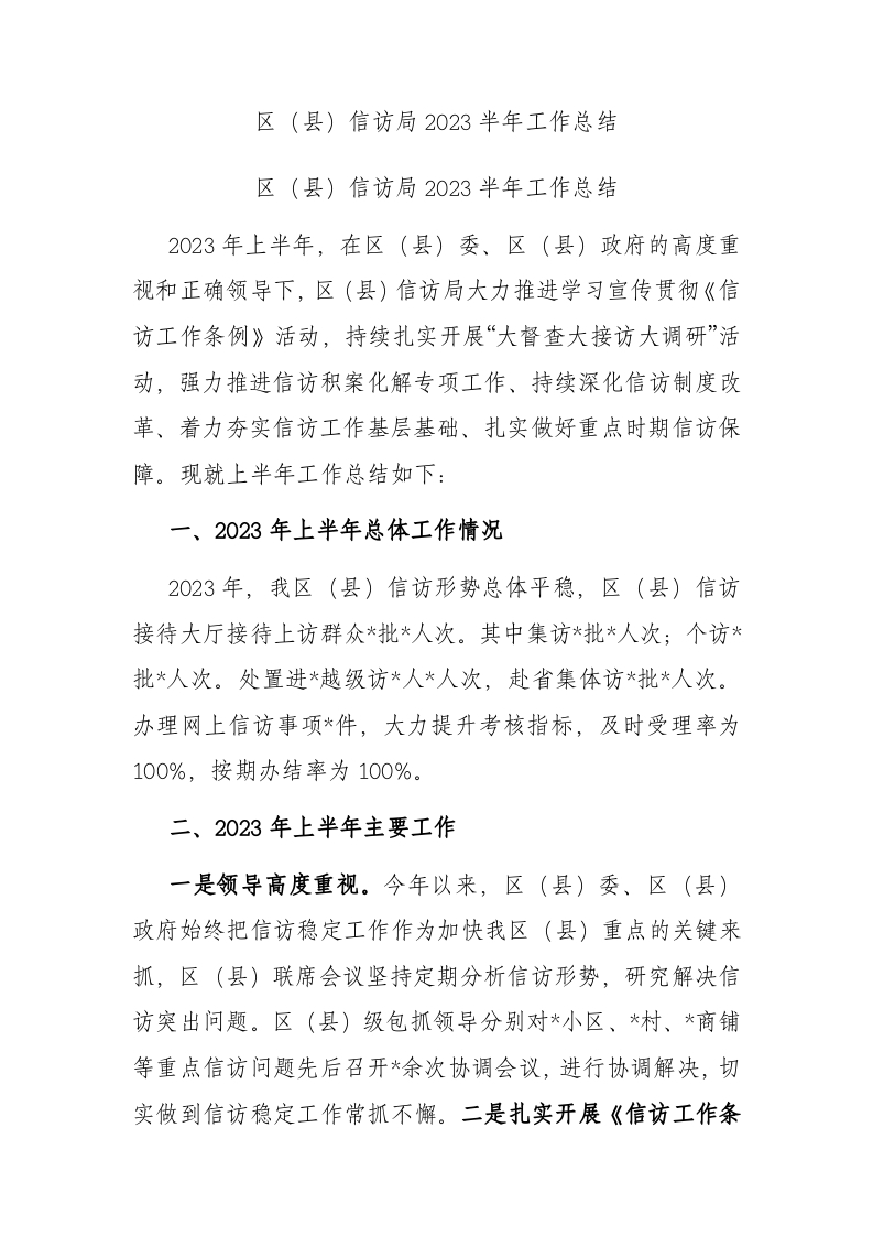 / 区(县)信访局2023半年工作总结