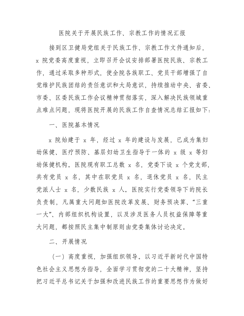 / 医院开展民族工作、宗教工作的总结汇报1600字