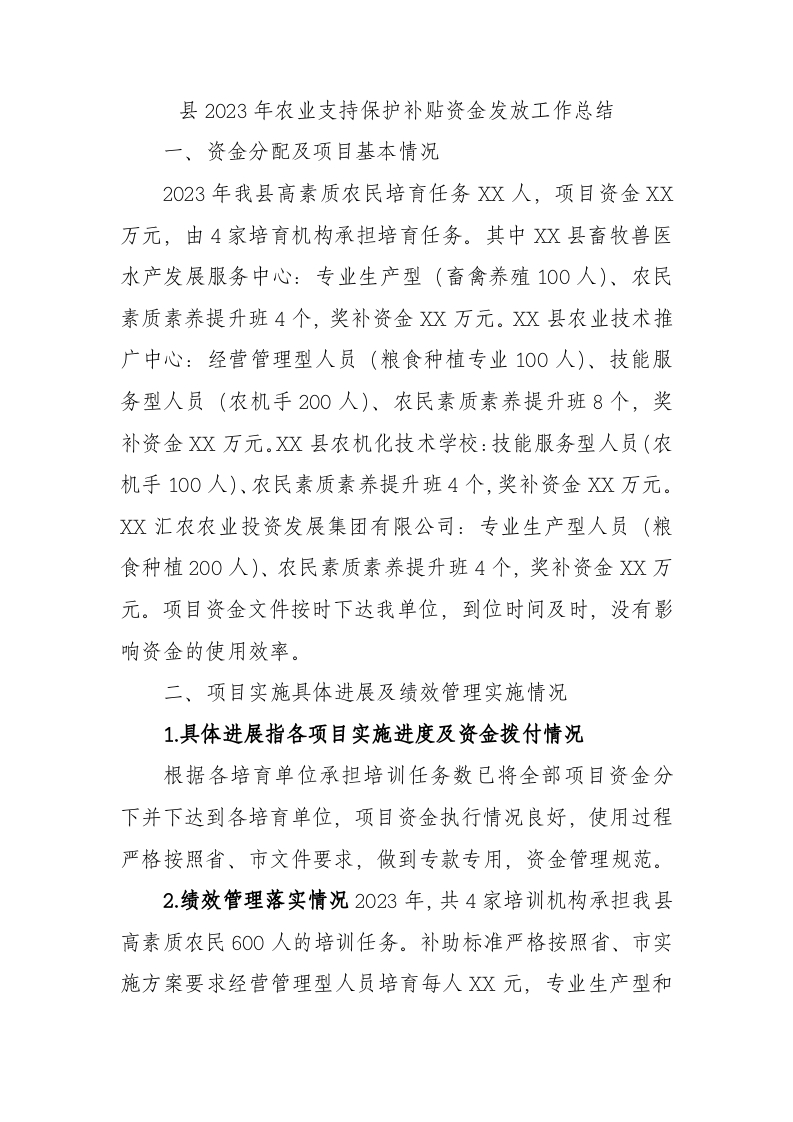 / 县2023年农业支持保护补贴资金发放工作总结