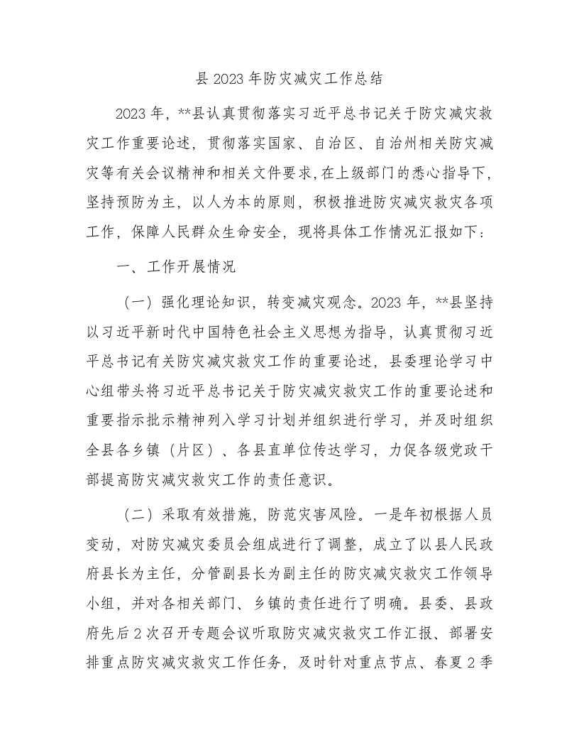 / 县2023年防灾减灾工作总结