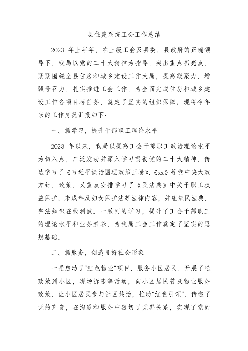 / 县住建系统2023年上半年工会工作总结