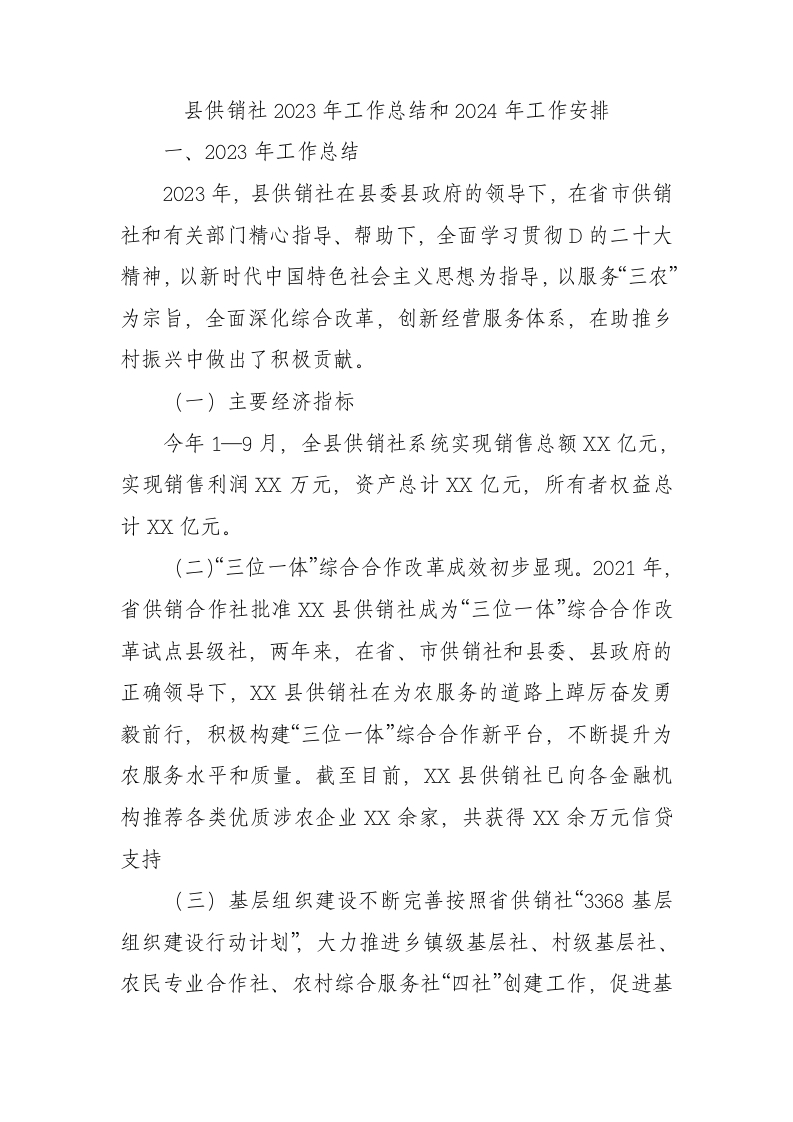 / 县供销社2023年工作总结和2024年工作安排