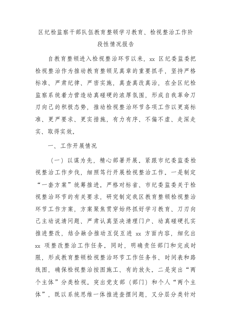 / 县区纪检监察干部队伍教育整顿学习教育、检视整治工作阶段性情况总结报告3900字
