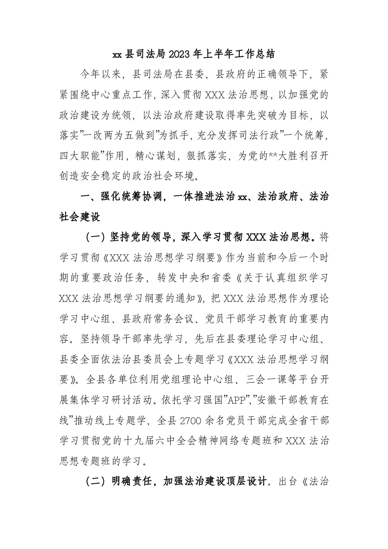 / 县司法局2023年上半年工作总结