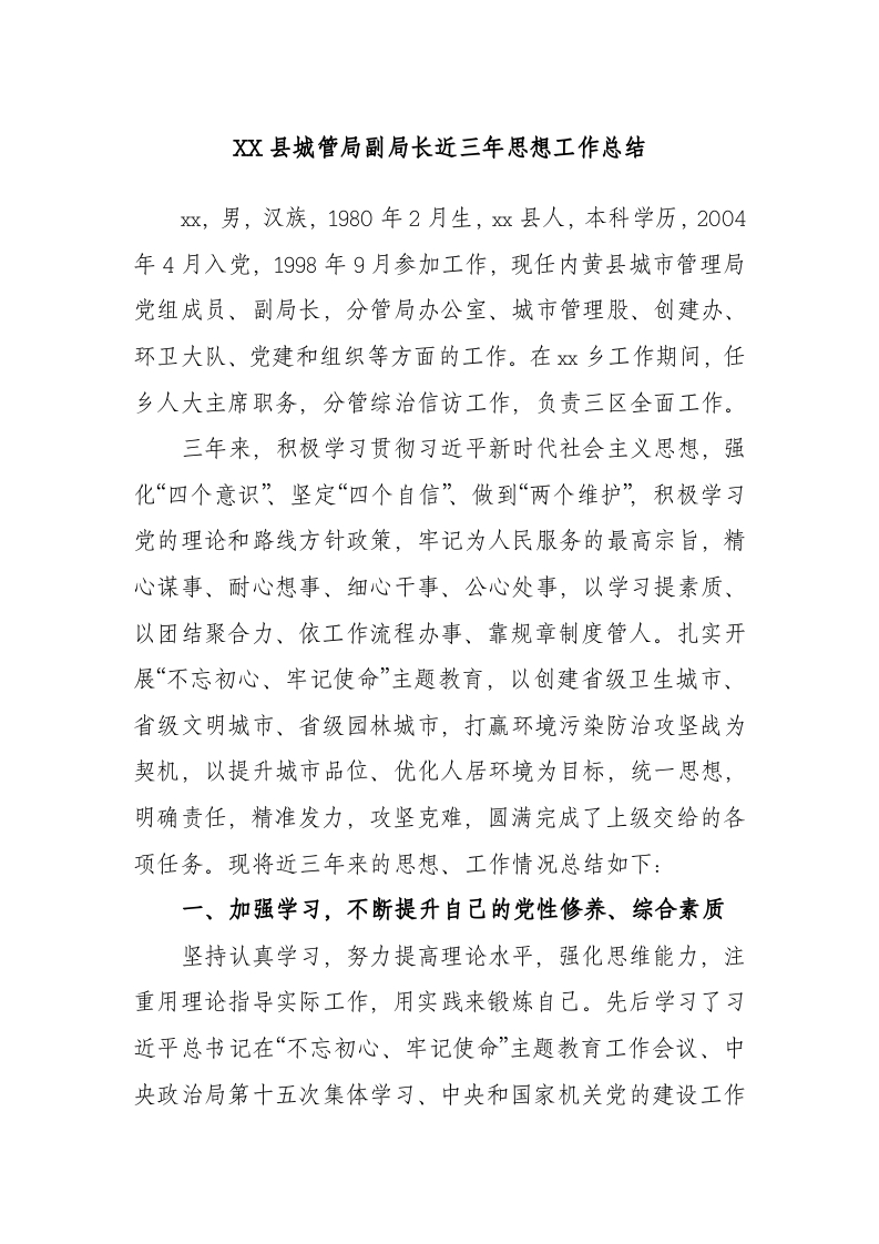 县城管局副局长近三年思想工作总结