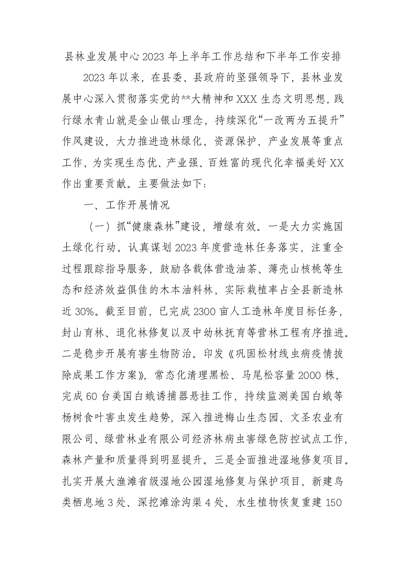 / 县林业发展中心2023年上半年工作总结和下半年工作安排