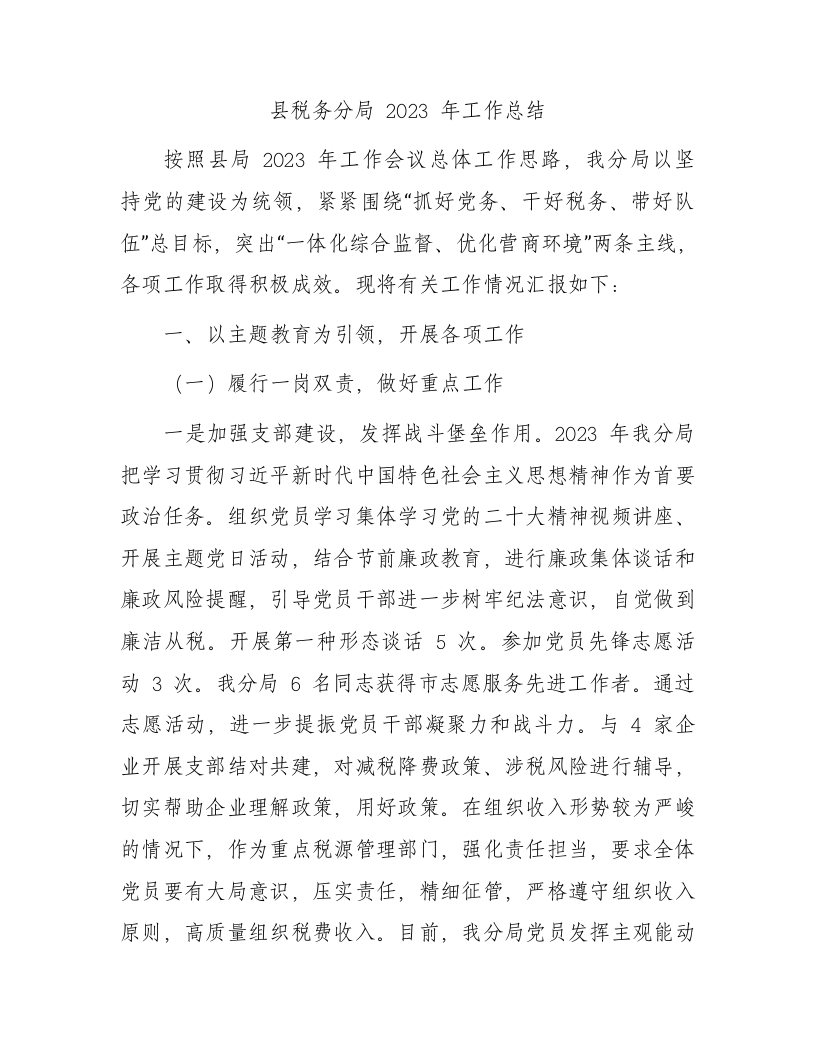 / 县税务分局2023年工作总结3400字