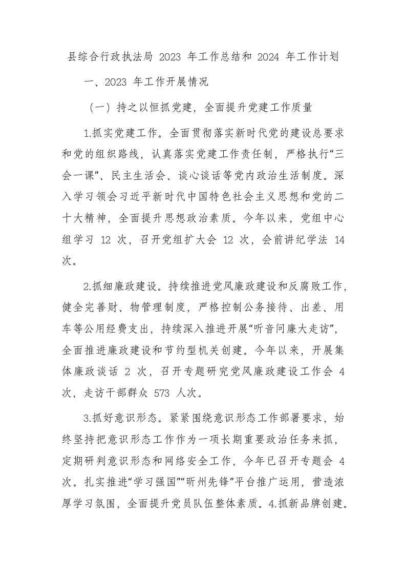 / 县综合行政执法局2023年工作总结