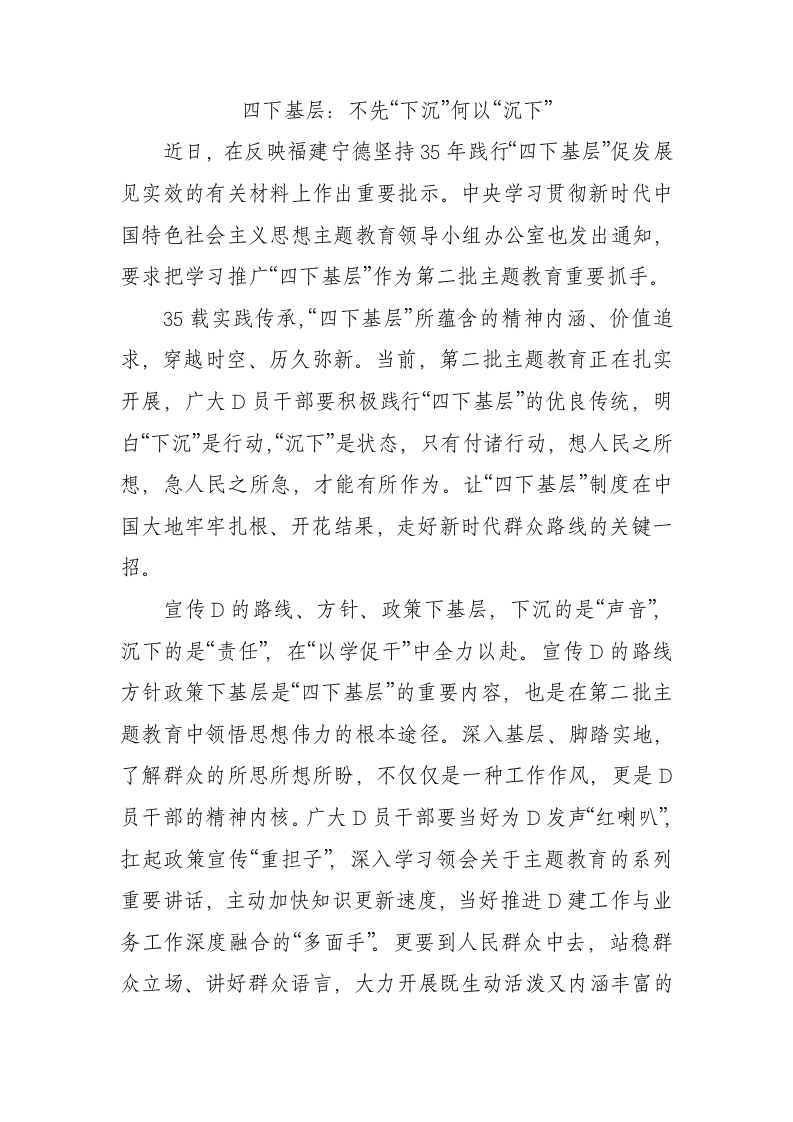 / 四下基层:不先“下沉”何以“沉下”