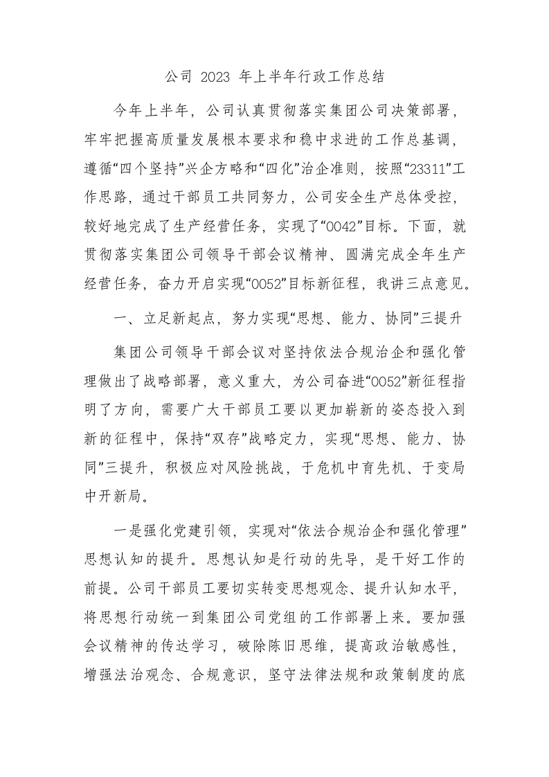 / 国企2023年上半年行政工作总结