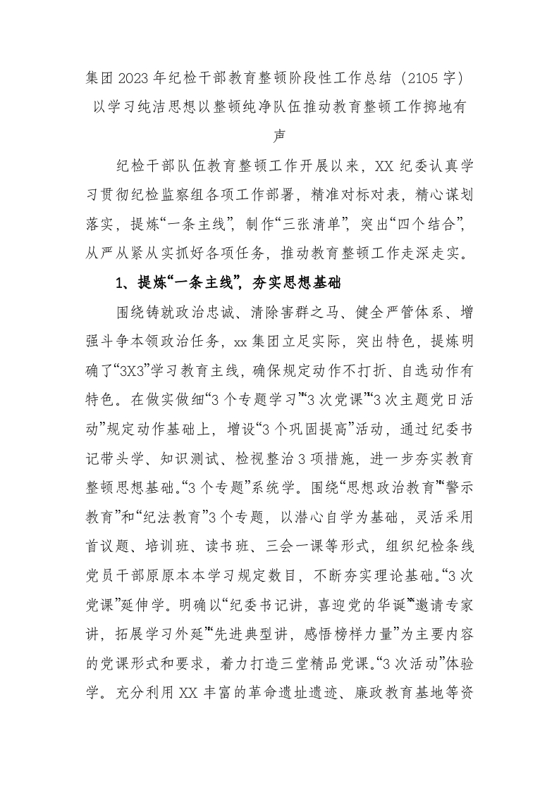 / 国企2023年纪检干部教育整顿阶段性工作总结