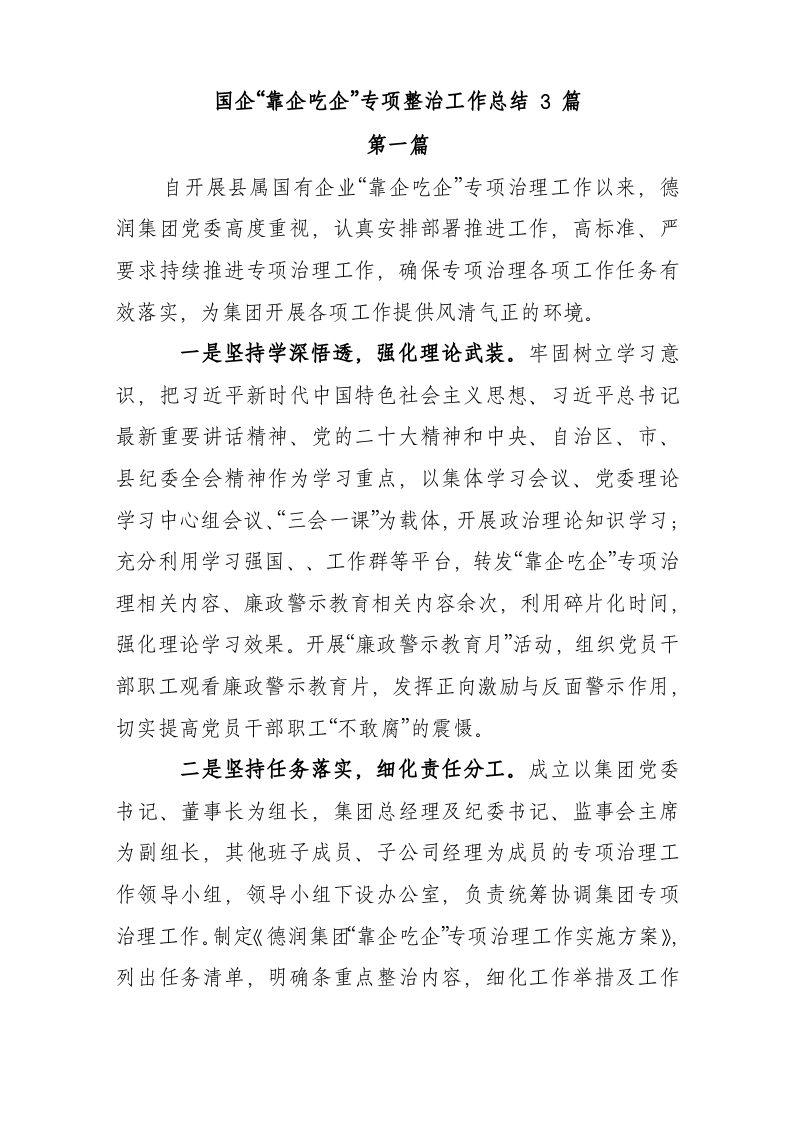/ 国企“靠企吃企”专项整治工作总结3篇