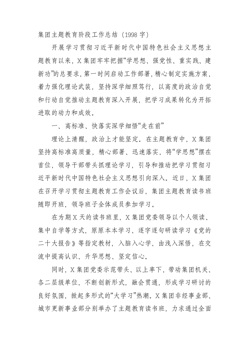 / 国企主题教育阶段工作总结