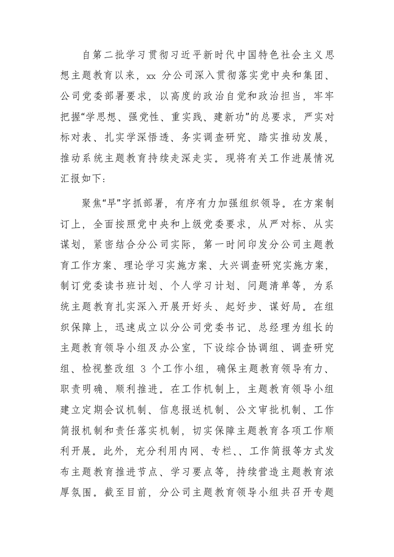 国企主题教育阶段性进展情况总结汇报3500字