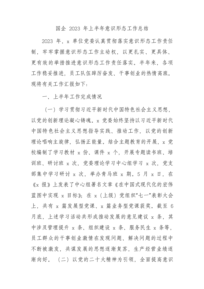 / 国企公司2023年上半年意识形态工作总结3300字