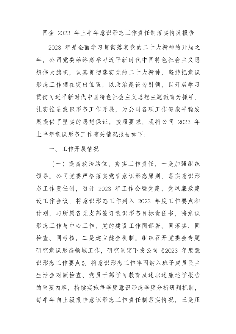 / 国企公司2023年上半年意识形态工作责任制落实情况总结报告3000字
