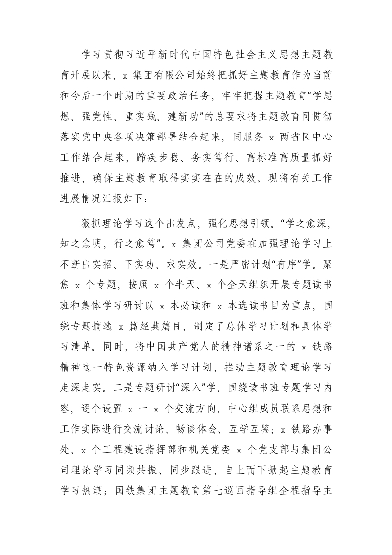 国企公司主题教育阶段性进展情况总结汇报1500字