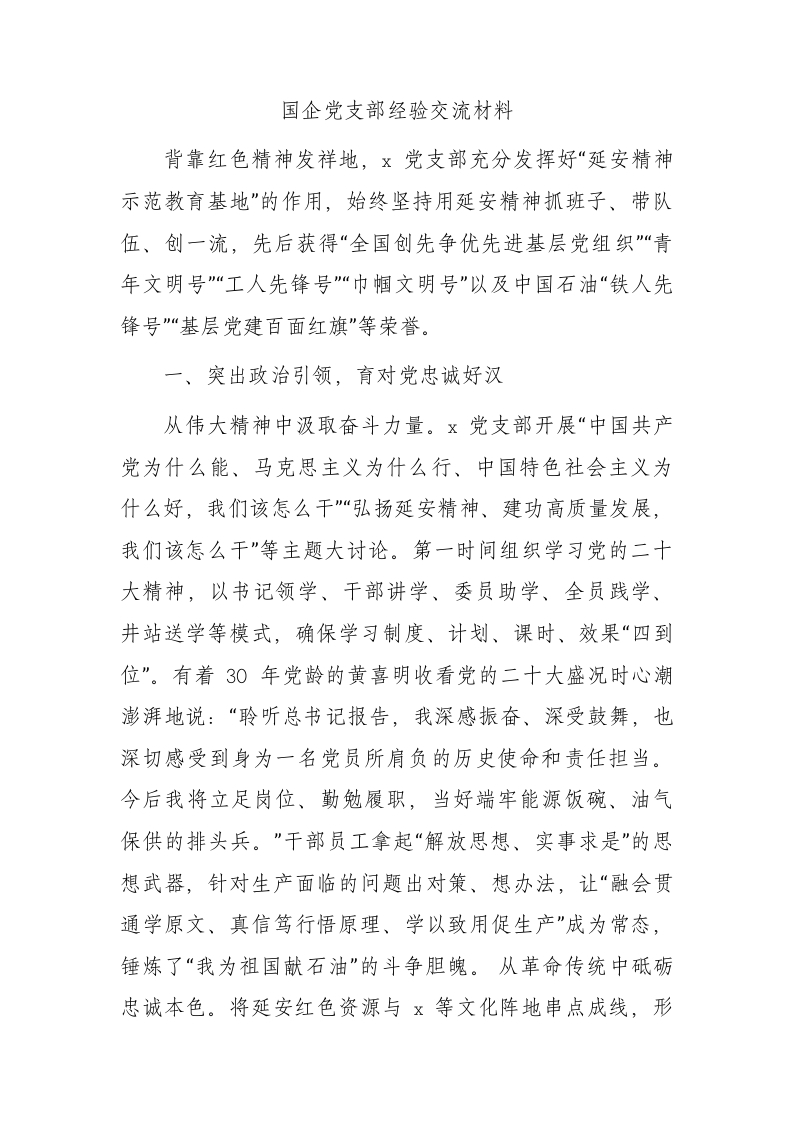 / 国企公司党支部经验总结交流2700字(延安精神)