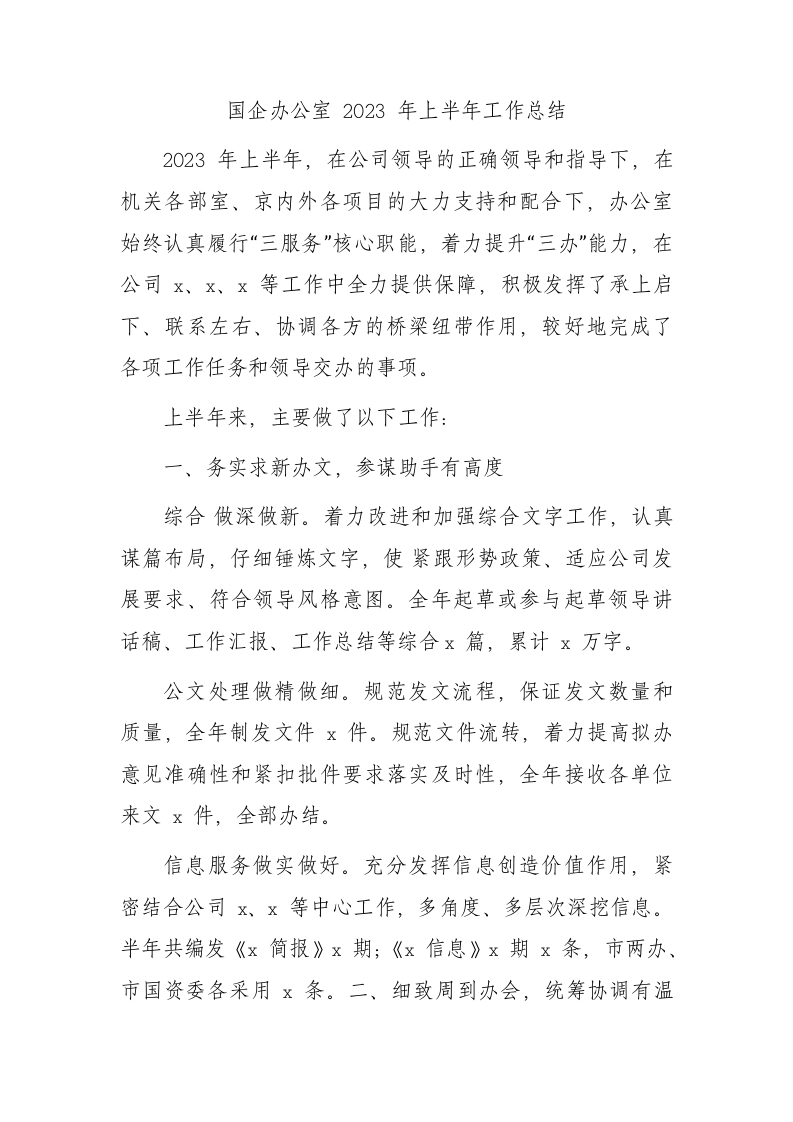 / 国企公司办公室2023年上半年工作总结