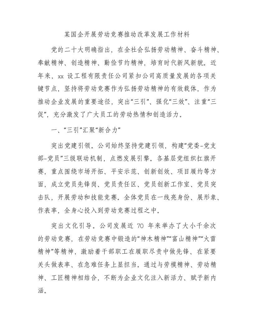 / 国企公司开展劳动竞赛推动改革发展工作经验总结