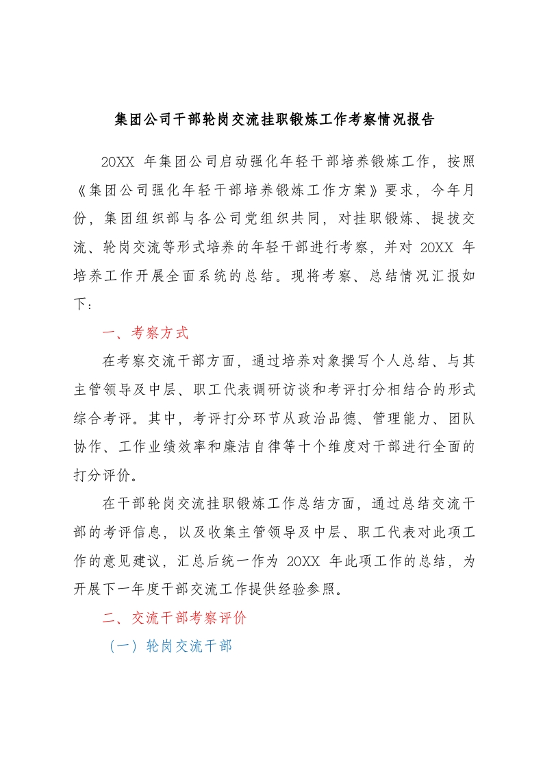 / 国企干部轮岗交流挂职锻炼工作考察情况总结报告
