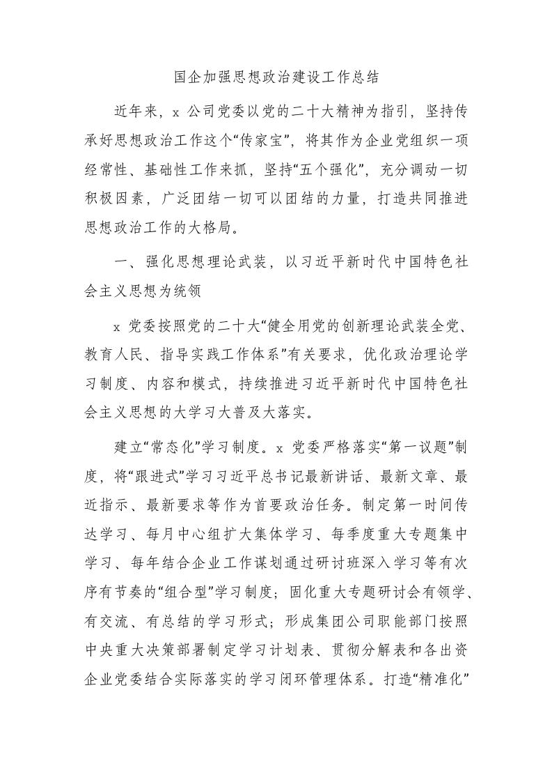 / 国企思想政治建设工作总结3900字