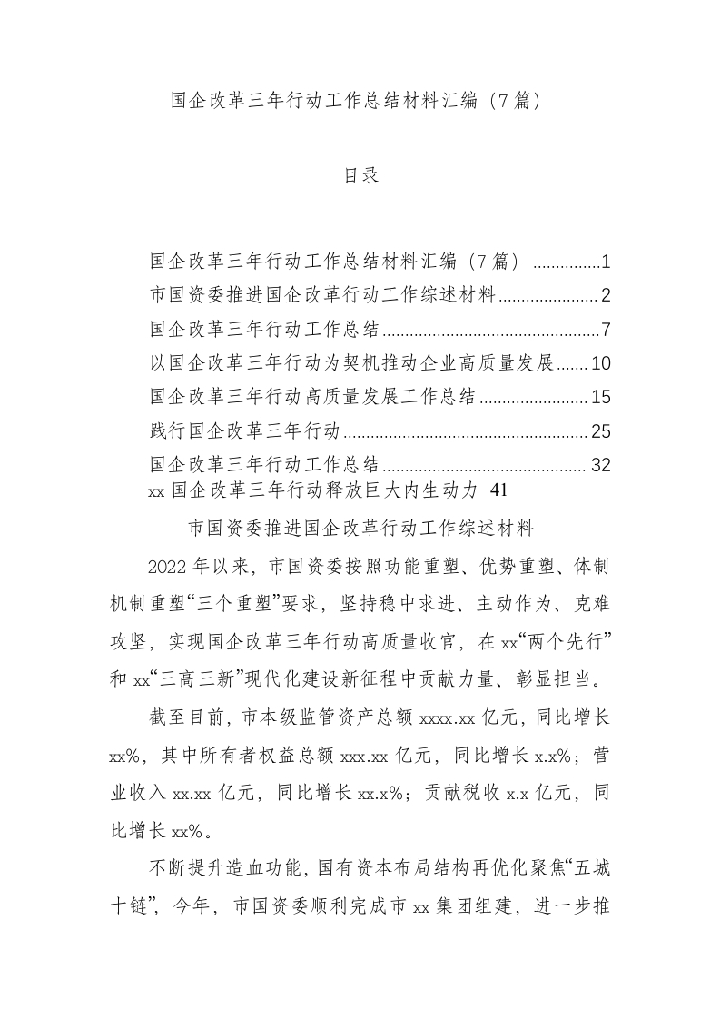 / 国企改革三年行动工作总结材料汇编(7篇)