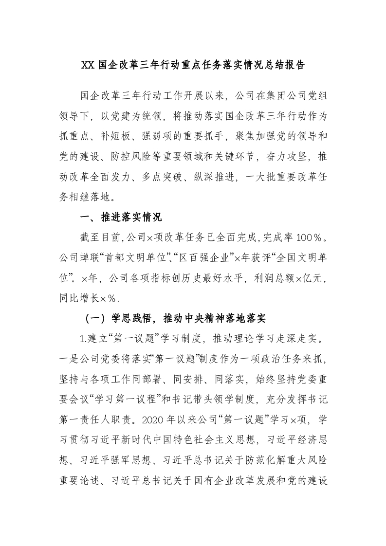/ 国企改革三年行动重点任务落实情况总结报告