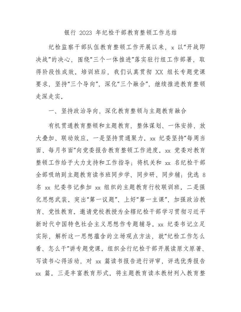 / 国企银行2023年纪检监察干部教育整顿工作总结1900字