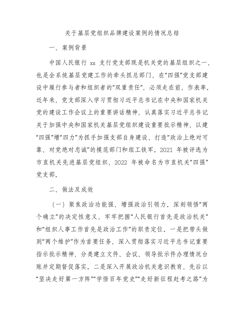 / 国企银行党组织品牌建设案例情况总结(四强党支部)