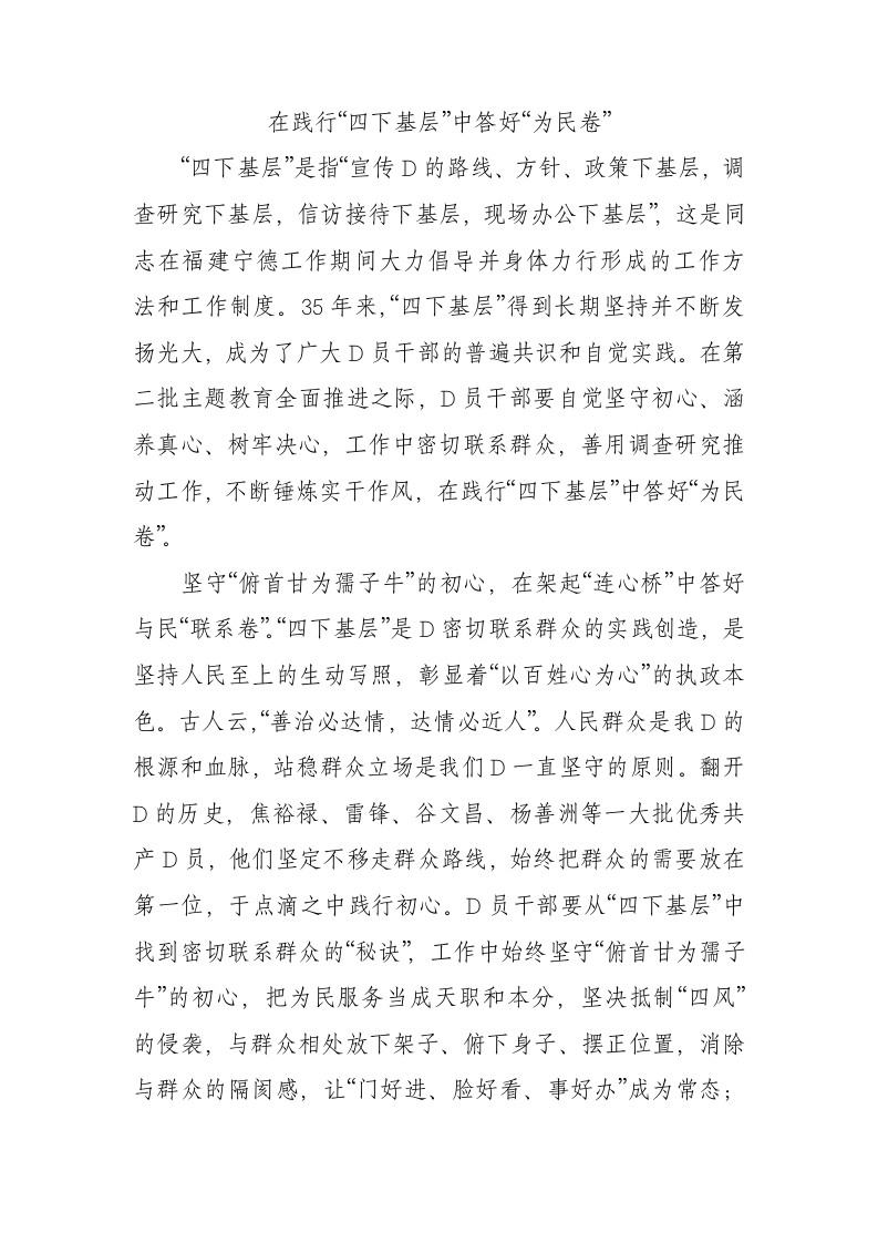 / 在践行“四下基层”中答好“为民卷”