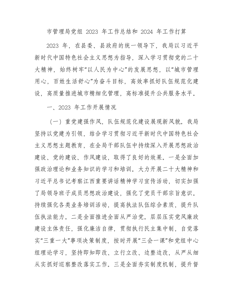 / 城市管理局党组2023年工作总结和2024年工作打算