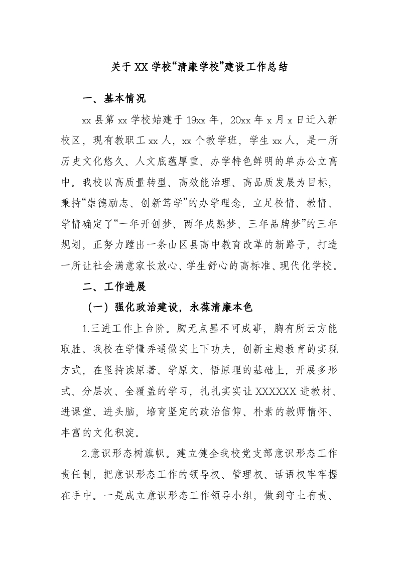 / 学校“清廉学校”建设工作总结