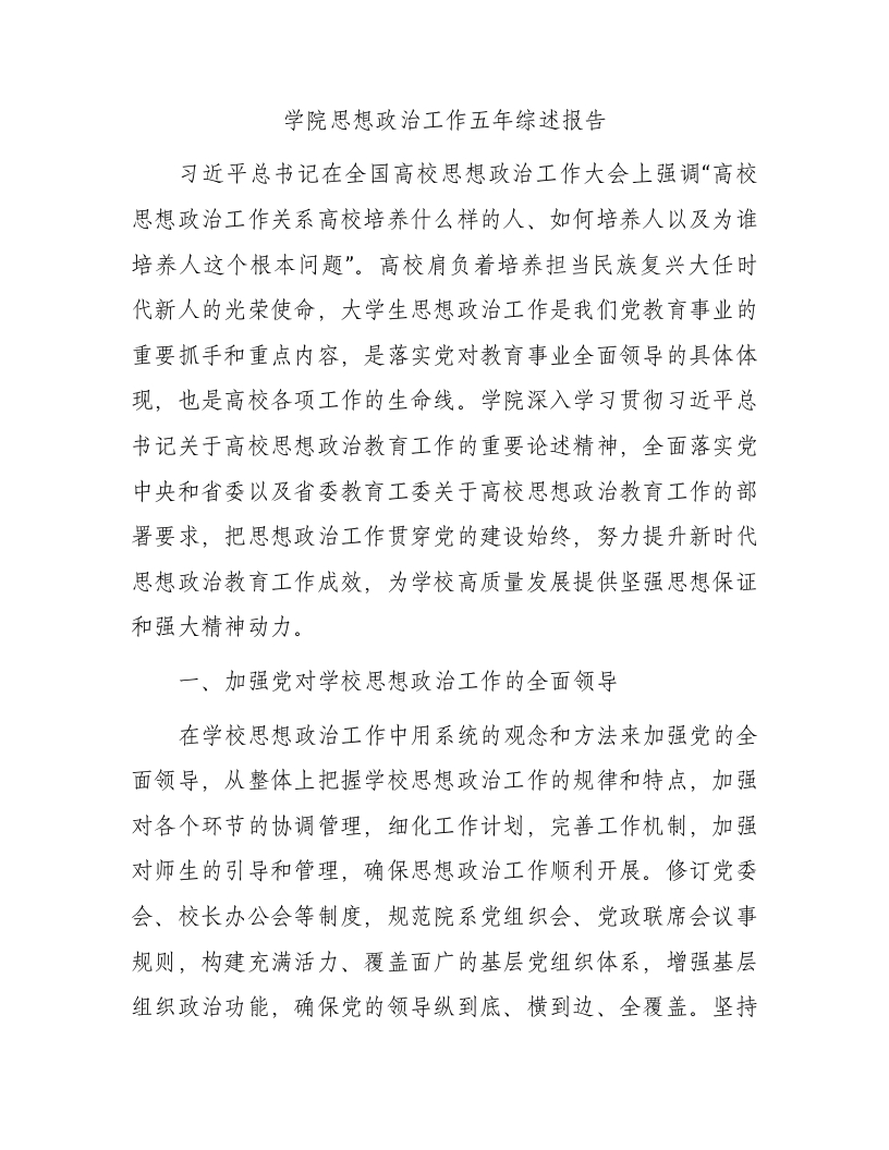 / 学校思想政治工作五年综述报告(4600字总结)