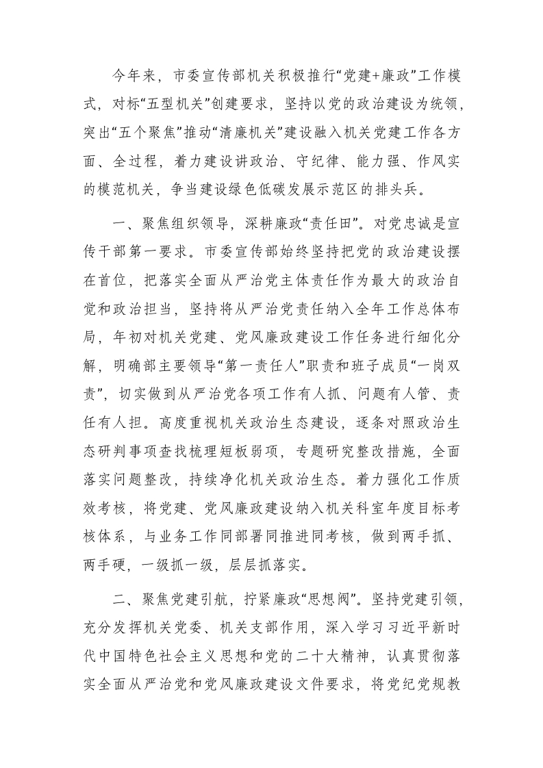 / 宣传部打造清廉机关工作总结汇报