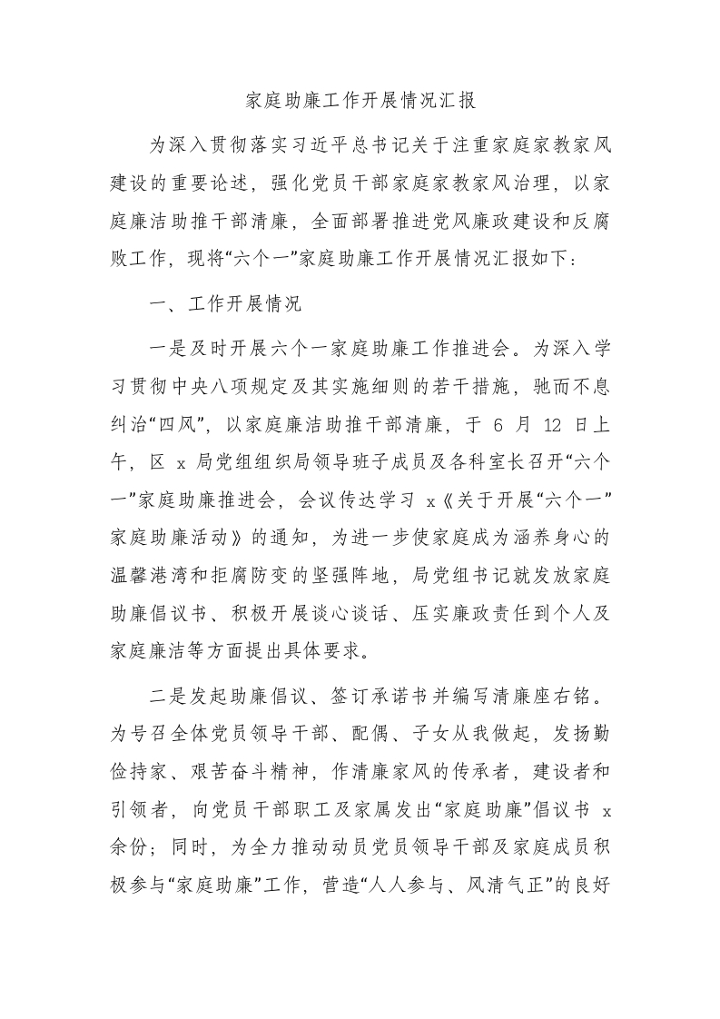 家庭助廉(党风廉政建设)工作开展情况总结汇报