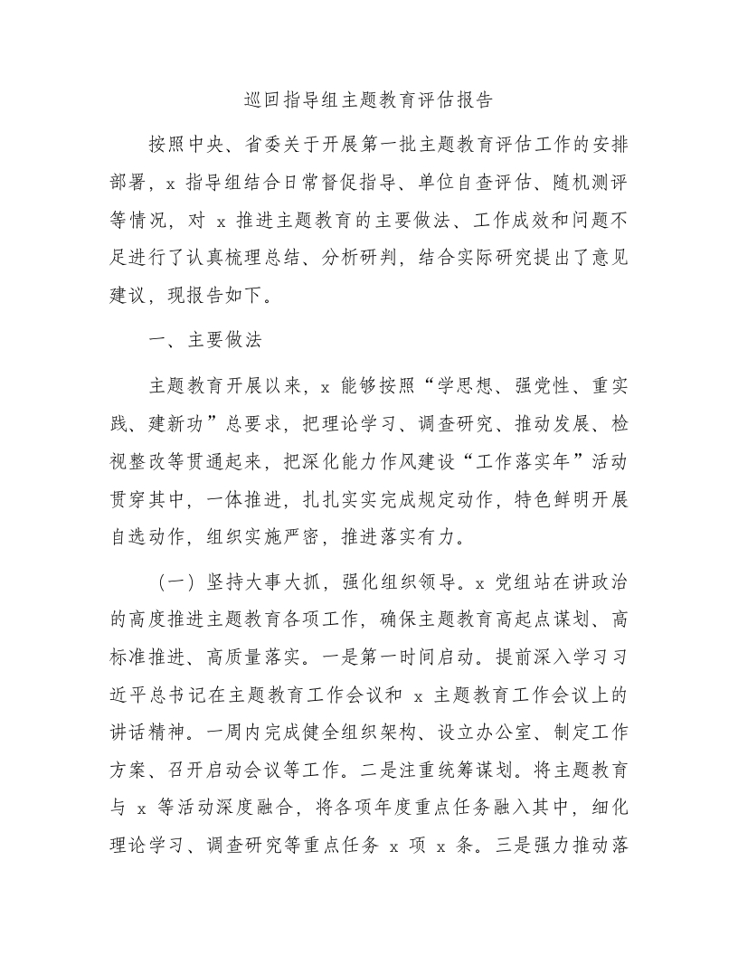 / 巡回指导组主题教育评估报告(总结4300字)