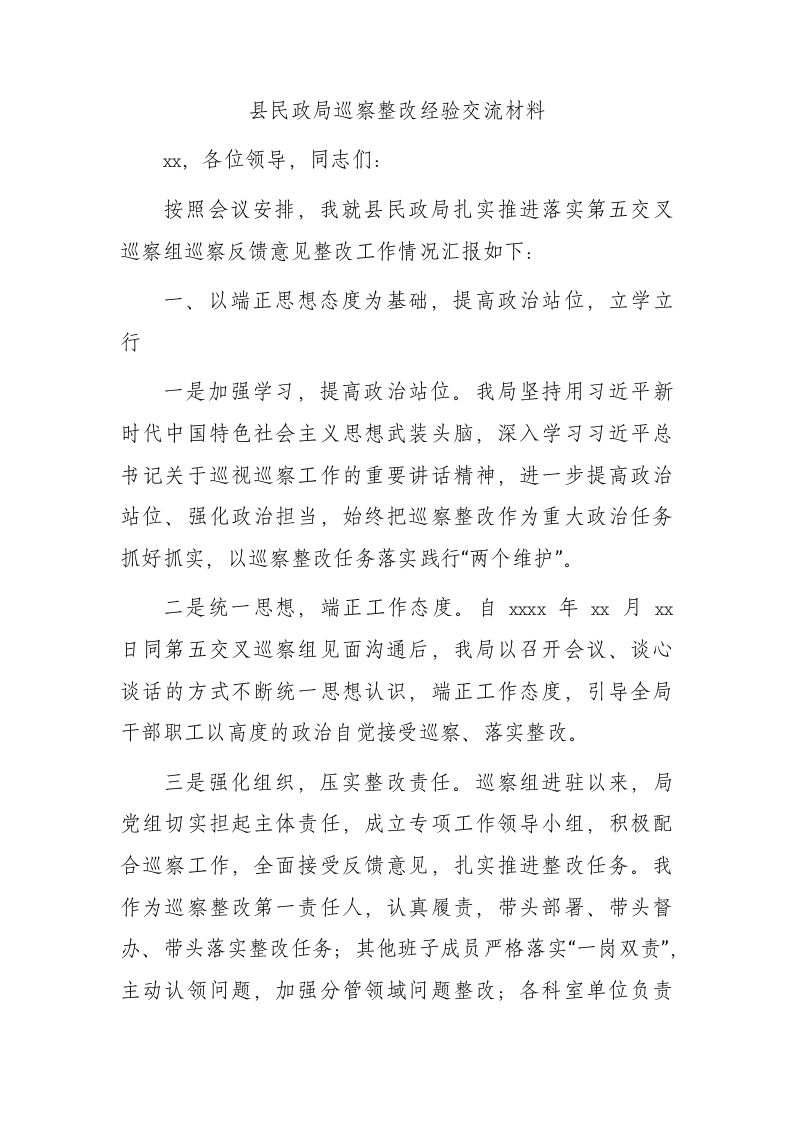 / 巡察整改经验总结交流(民政1800字)