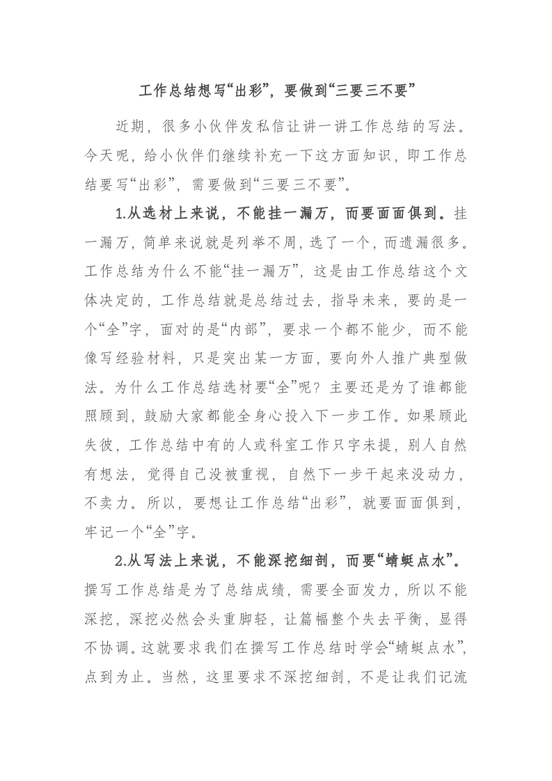 / 工作总结想写“出彩”,要做到“三要三不要”