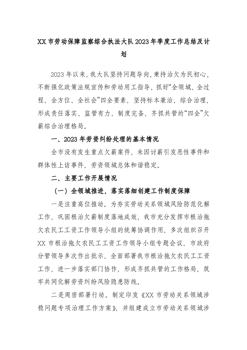 / 市劳动保障监察综合执法大队2023年季度工作总结及计划