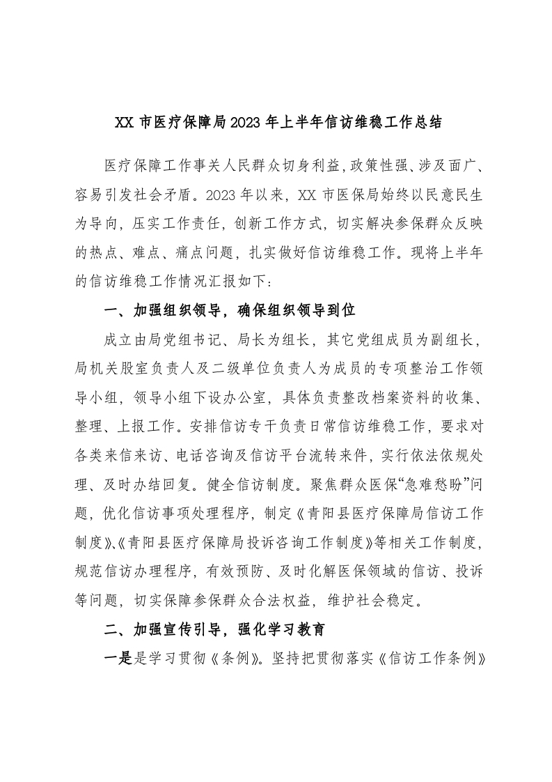/ 市医疗保障局2023年上半年信访维稳工作总结
