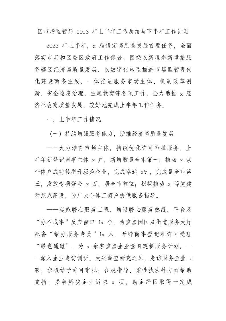 / 市场监管系统2023年上半年工作总结
