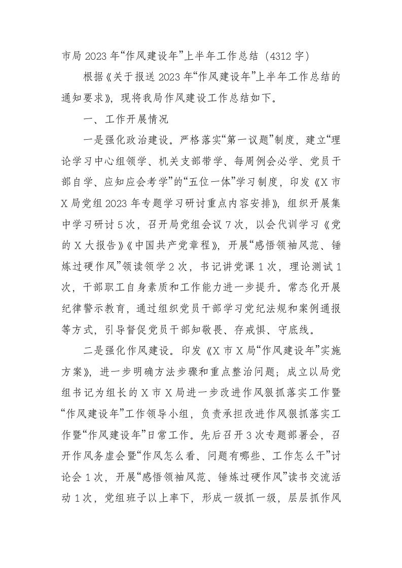 市局2023年“作风建设年”上半年工作总结