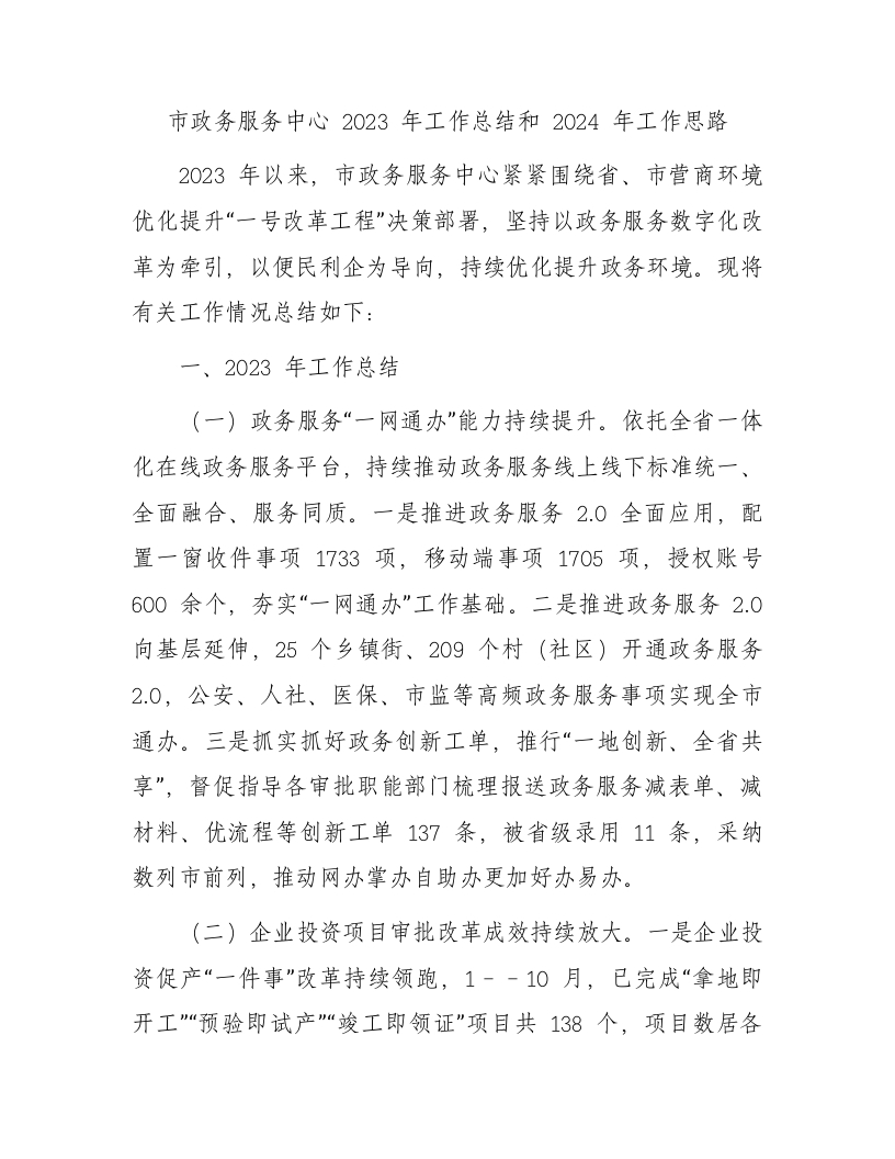 / 市政务服务中心2023年工作总结和2024年工作思路