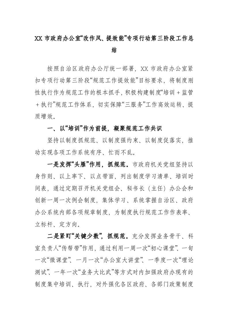 / 市政府办公室“改作风、提效能”专项行动第三阶段工作总结