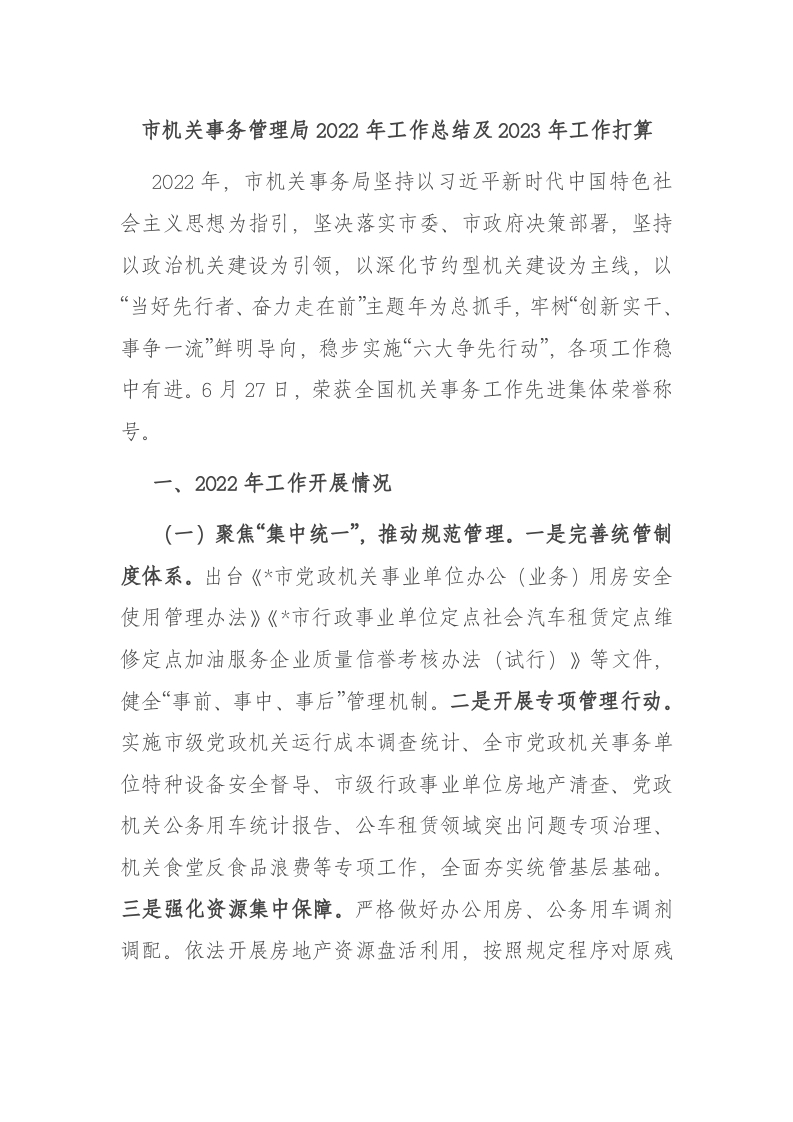 / 市机关事务管理局2022年工作总结及2023年工作打算