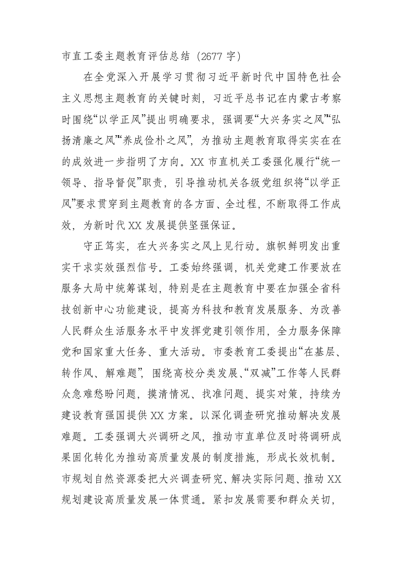 / 市直机关工委主题教育评估总结