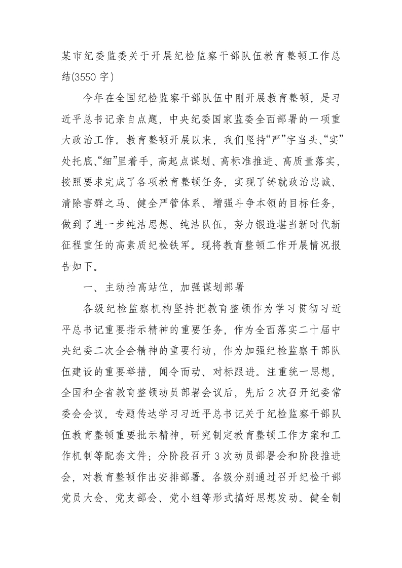 / 市纪委监委关于开展纪检监察干部队伍教育整顿工作总结