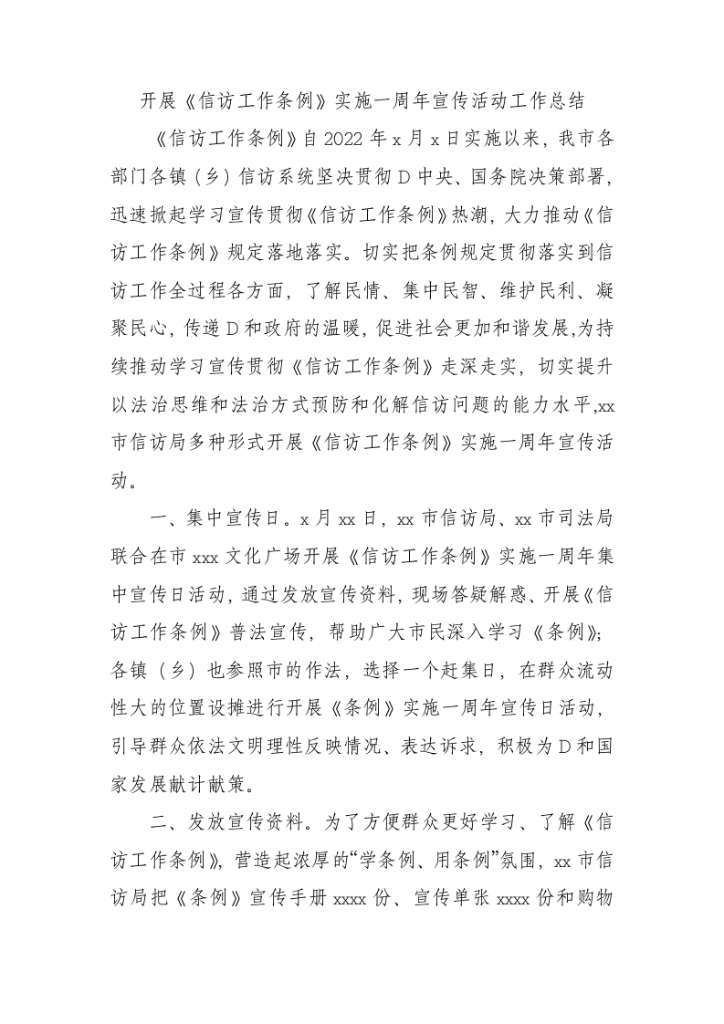 / 开展《信访工作条例》实施一周年宣传活动工作总结