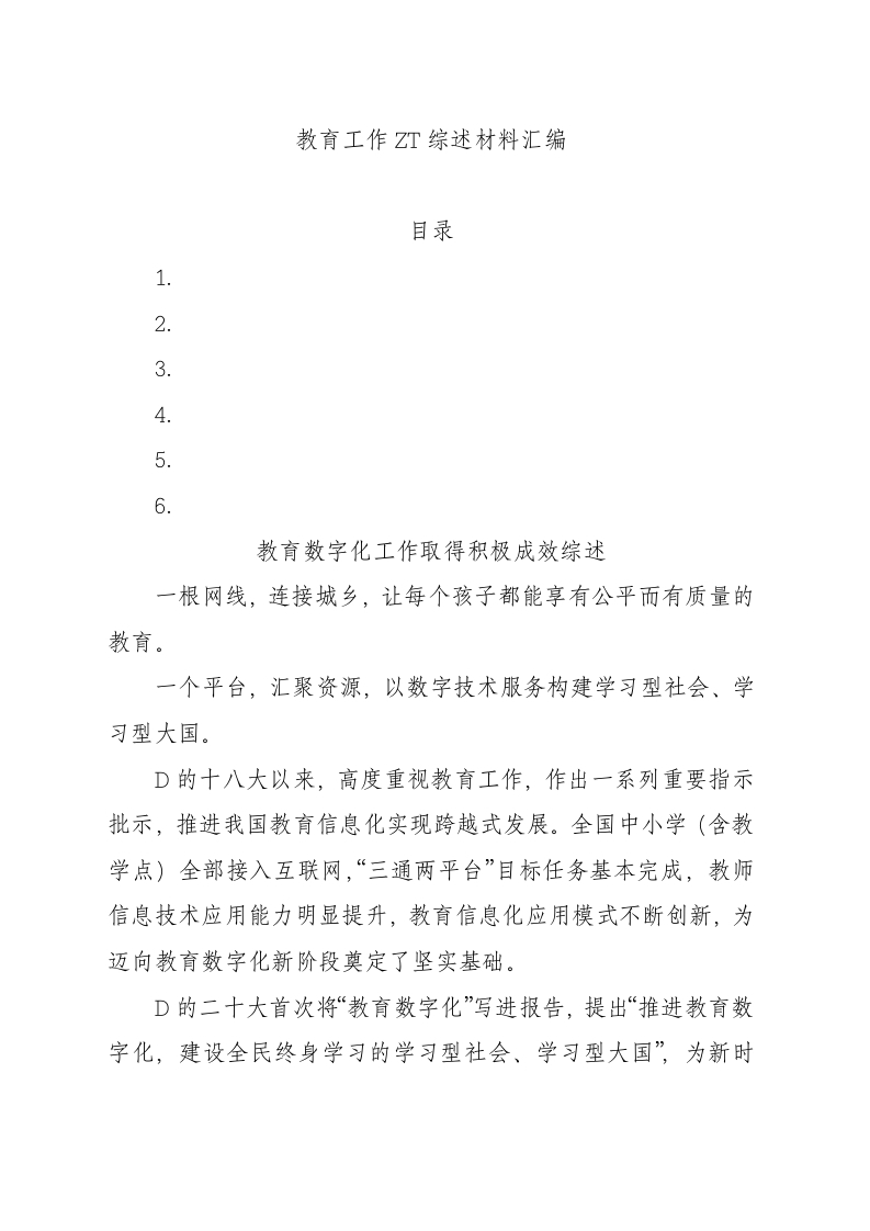 教育工作主题综述材料汇编